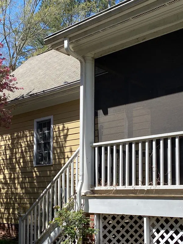 This homeowner was referred to us by his neighbor. We replaced his roof in just a couple of days. The Weathered Wood shingles look beautiful with the yellow exterior.